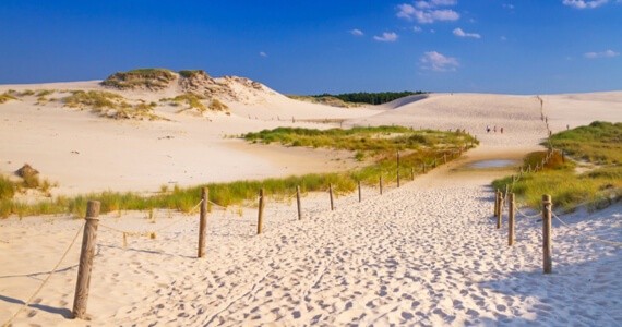 Prístavné mesto Łeba leží v severnom Poľsku v pomoranskom vojvodstve. Jeho centrum, plné obchodov a zábavných podnikov, je hojne navštevované turistami. Łeba disponuje dvoma veľkými plážami, kde mimo sezóny často nestretnete ani živej duše. Asi 5 km od mesta sa nachádza Slowinski národný park, ktorý sa vyznačuje úchvatnými piesočnými dunami a starou raketovou základňou. V oblasti parku, v tesnom susedstve mesta, je prírodná rezervácia Mierzeja Sarbsko s borovicovým lesom na piesočných dunách.