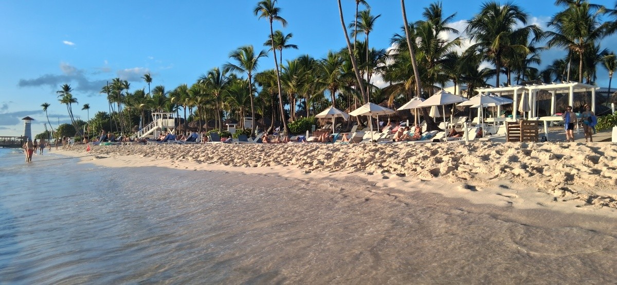 Pláž je snadno dostupná pěšky (cca 5 minut) i linkovou dopravou (zastávka je 1 minutu od pláže uvnitř hotelu, lze se dostat "domácím golfovým autem", které lze zavolat telefonicky ze zastávky). Takže ji mohu doporučit lidem s omezenou pohyblivostí a seniorům. Zejména jsme si všimli, že na pláži jsou speciální zařízení pro osoby s omezenou pohyblivostí, se kterými si mohou i oni užívat mořské vlny. I invalidé!!! Byli jsme svědky radosti starších, obtížně pohyblivých lidí, kteří si užívali moře, vícekrát! Čistota*****, tlačenice*** (Neměli jsme žádné problémy, nemáme žádné speciální potřeby. Nemuseli jsme ležet na zemi.)