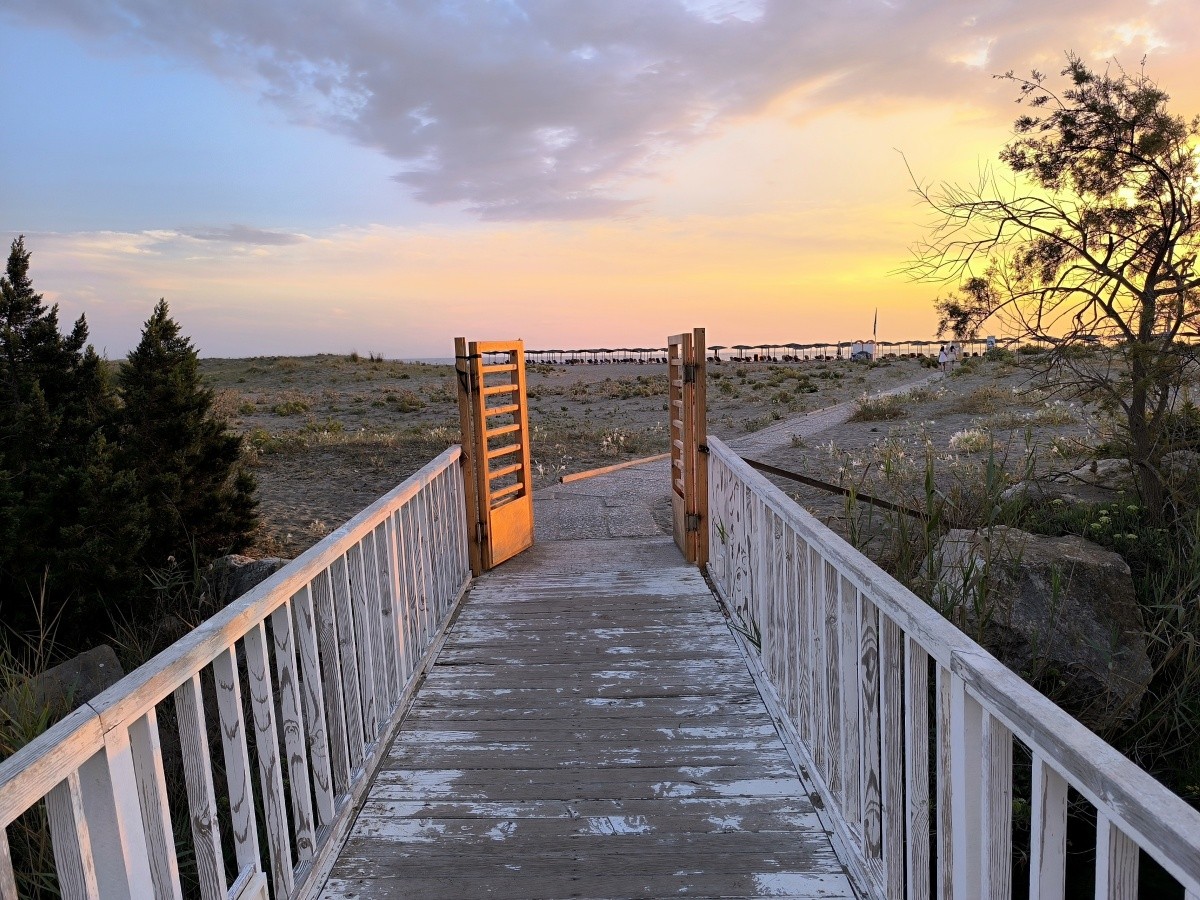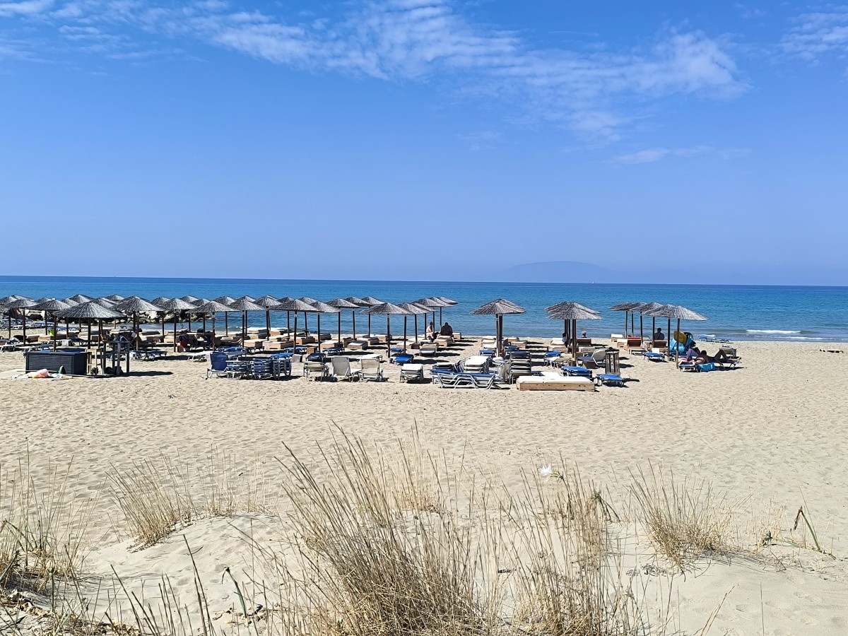 Pláž topka, piesočnatá,dostatok lehátkok, bez rias ,plná malých mušli,ideálne aj pre rodiny s deťmi.Bar na pláži síce nie je,ale ani nechýba,kazil by tu romantiku a k baru to bolo ozaj na 2 minútky cez pekný mostik.Bez vyhrad