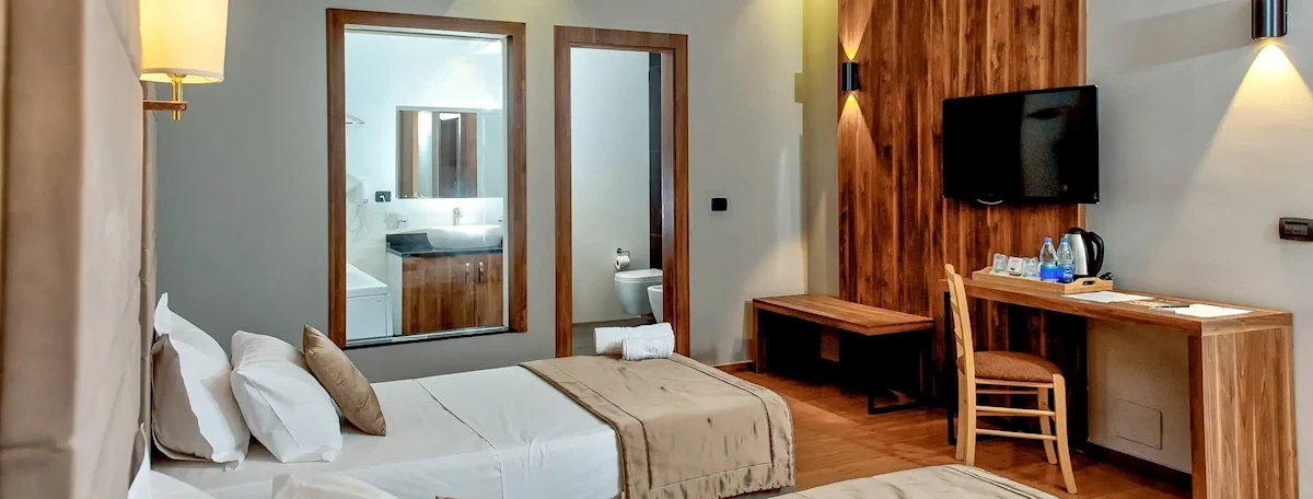 Rafaelo Hotel Shengjin sa nachádza priamo pri dlhej a širokej piesočnatej pláži, od ktorej je hotel oddelený iba pešou promenádou. Krásne prímorské letovisko Shengjin sa nachádza 6km od mesta Lezhë a cca 50km od letiska Rinas v hlavnom meste Tirana a 90km od letiska Podgorica.Vybavenie