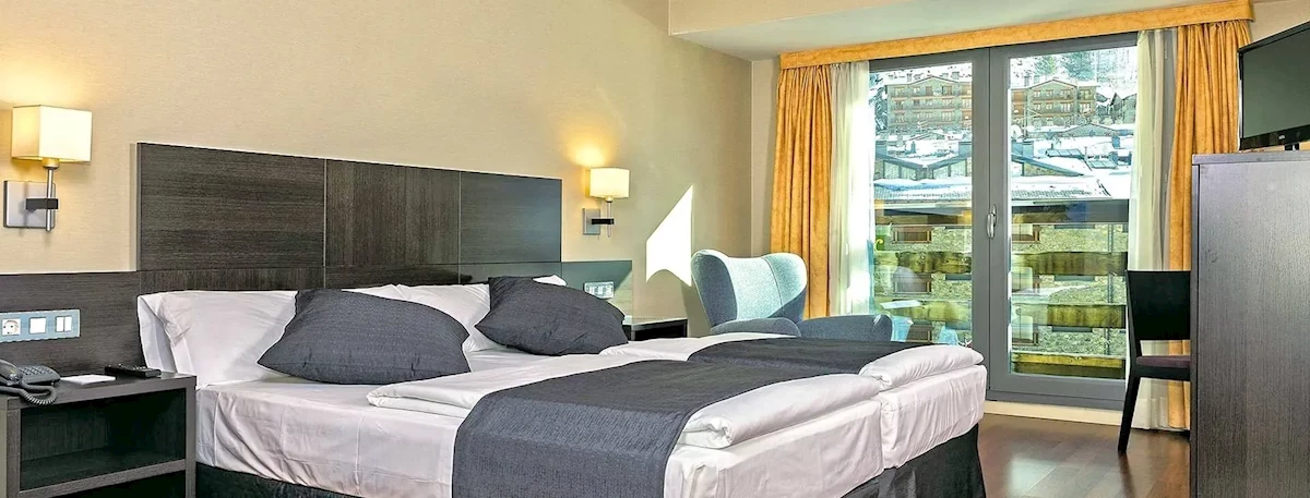 Transfer z lotniska w Barcelonie trwa około 3,5 godziny, a odległość wynosi około 210 km. Naprzeciwko hotelu (ok.75 m) znajdują wyciągi narciarskie dające dostęp do największego ośrodka narciarskiego w Pirenejach – Grandvalira. W pobliżu hotelu znajduje się również centrum sportowe Palau du Gel z siłownią, basenem z podgrzewaną wodą, sauną oraz lodowiskiem (za dodatkową opłatą). Blisko hotelu znajduje się przystanek autobusowy, z którego można dojechać do stolicy księstwa Andorra la Vella, oddalonej o około 12 km. Hotel położony jest na wysokości około 1500 m n.p.m. w bezpośredniej bliskości stoków, w centrum miasteczka Canillo, gdzie znajdują się sklepy i restauracje.Strona www
