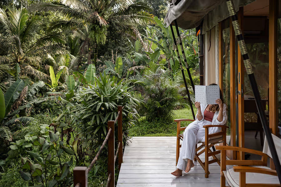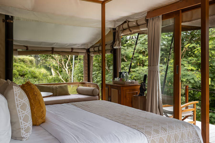 Resort nabízí pouhé 4 ubytovací jednotky - luxusně zařízené stany. Každý tedy má dostatek prostoru, soukromí a s ohledem na minimální věk hostů (18) i klid. Stany jsou zařízeny s důrazem na přírodní materiály a ekologii, zároveň poskytují vysoký standard komfortu. Ve všech můžete očekávat vlastní koupelnu, klimatizaci/ventilátor, vysoušeč vlasů, set na přípravu čaje, podložku na jógu a ke každému z nich přiléhá terasa.