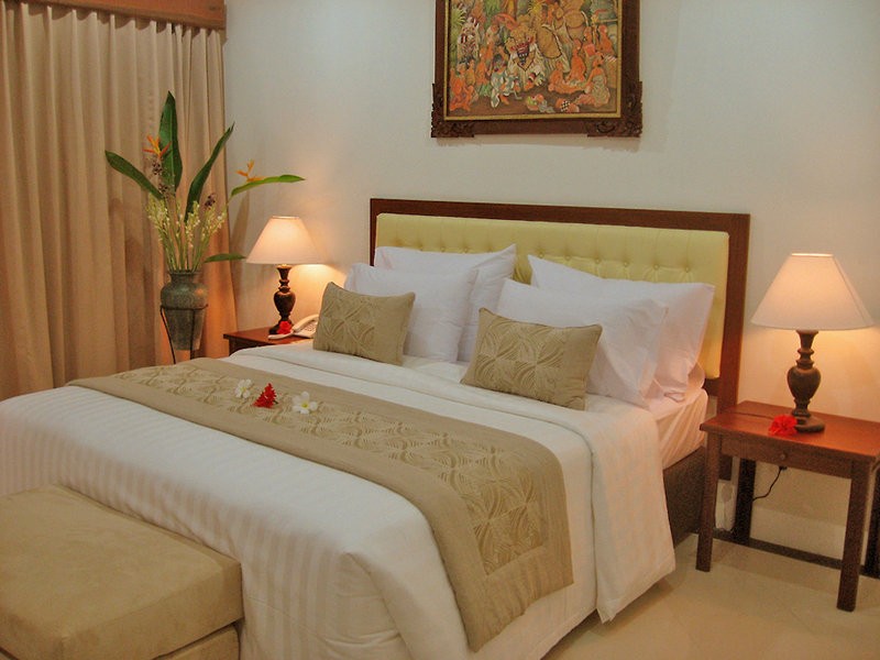 Lage & Umgebung Das Hotel der gehobenen Mittelklasse liegt ca. 3 km östlich von Legian/Kuta. Sie haben dort eine angenehme Distanz zum städtischen Trubel und die perfekte Lage, um einen ruhigen und entspannenden Urlaub zu genießen. Sollten Sie trotzdem den Wunsch nach pulsierenden Leben verspüren, finden Sie nur ca. 800 m entfernt ein Stadt- und Touristenzentrum mit Einkaufs- und Unterhaltungsmöglichkeiten vor. Auch einen Strand erreichen Sie nach ca. 800 m.