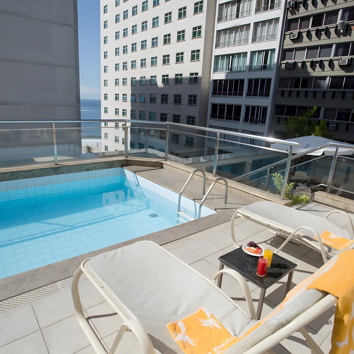- basen na dachu, słodka woda, bezpłatne leżaki; centrum fitness.
