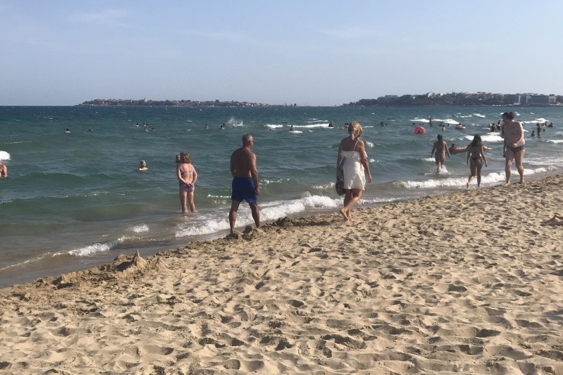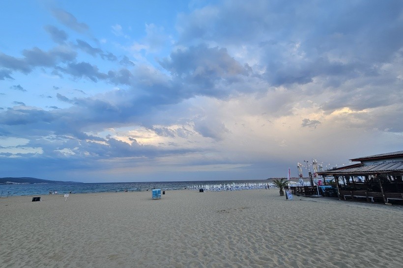 Pláž je vzdálená 20 minut chůze, i když zřejmě vede zkratka. Je široká, čistá a moře je teplé. Lehátka stojí 10 BGN za jedno lehátko a 10 BGN za slunečník. Jedinou nevýhodou byl nedostatek toalet na pláži. Jedna byla blízko východu. Moderovaná recenze