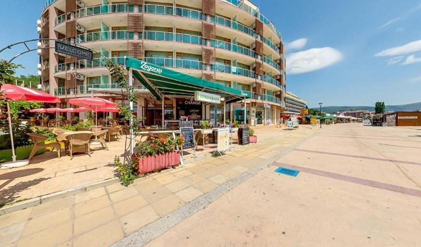 Hotel Briz je příjemný 3* hotel situovaný přímo u široké písčité pláže v populárním letovisku Slunečné pobřeží na bulharském pobřeží Černého moře. Díky své poloze přímo u pobřeží a pozvolnému vstupu do moře je ideální pro hosty, kteří chtějí trávit většinu dne u vody a snadno kombinovat pobyt u moře s objevováním místního letoviska. Hotel nabízí venkovní bazén s oddělenou dětskou zónou a sluneční terasou s lehátky a slunečníky, kde si můžete během dne užívat relaxaci u vody a odpočinek v příjemné atmosféře. V areálu hotelu je hlavní restaurace, lobby bar i Wi-Fi připojení zdarma, takže během pobytu máte pohodlné zázemí pro stravování i komunikaci. Pokoje jsou vybavené klimatizací, balkonem či terasou a televizí, což zajišťuje komfortní ubytování pro páry i rodiny. Hotel se nachází také blízko centra letoviska, kde najdete restaurace, bary, obchody i noční život, a přesto si můžete užít klidnější části pláže a relaxaci u bazénu.