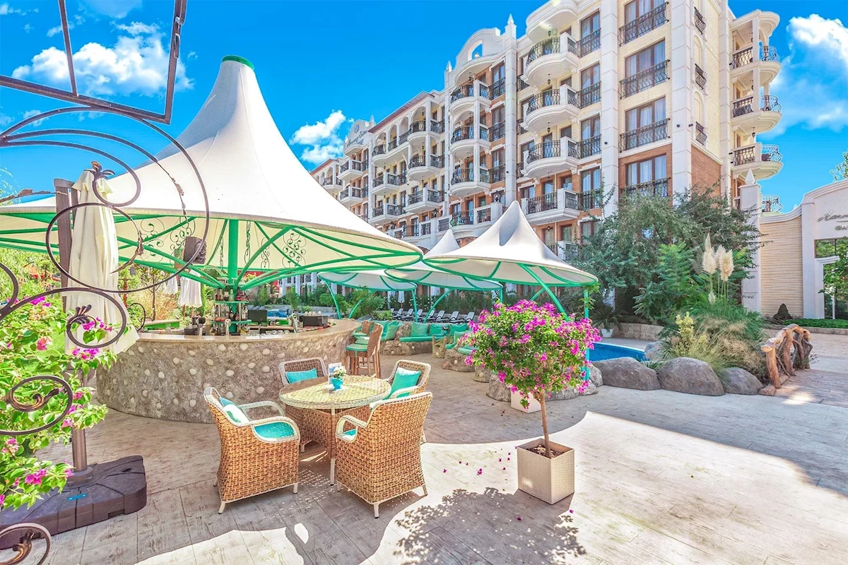Elegantný apartmánový komplex sa nachádza v tichej oblasti, len 500 metrov od pláže. Ubytovanie ponúka priestranné apartmány s kuchynkami, balkónmi a moderným vybavením vrátane klimatizácie a bezplatného Wi-Fi pripojenia na internet. Rezort má rozsiahly zelený park s chodníkmi, altánkami a detským ihriskom, ako aj bazén a relaxačnú zónu, vďaka čomu je ideálnym miestom pre rodinnú dovolenku.