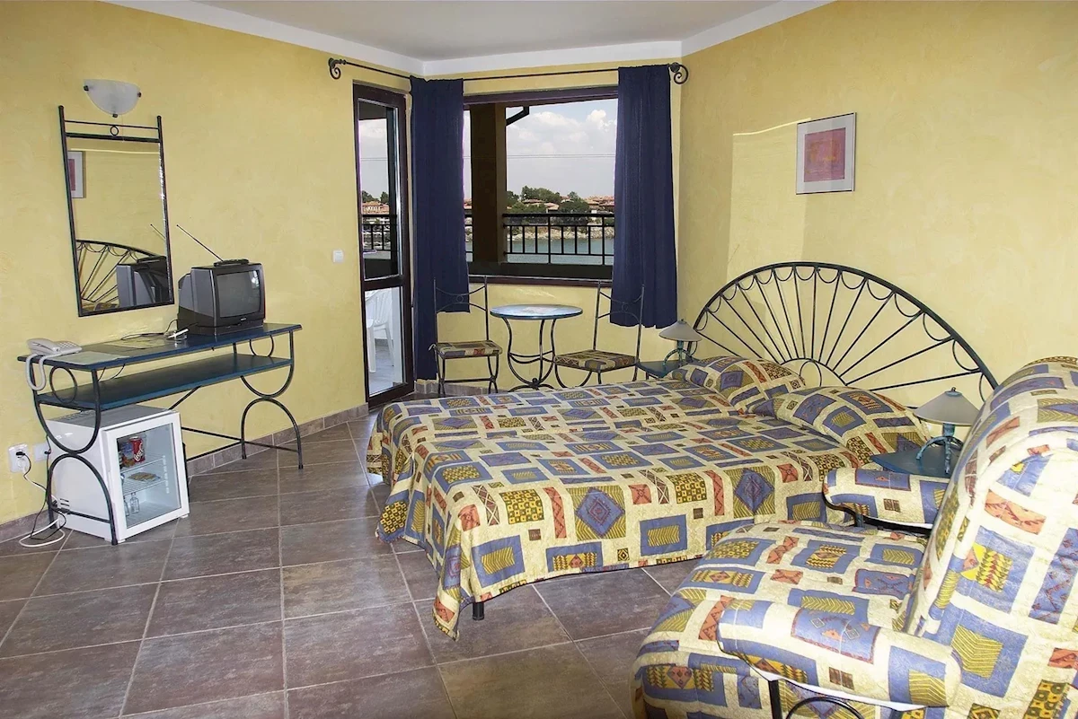 Położony zaledwie 100 metrów od centralnej plaży, oferuje panoramiczne widoki na Morze Czarne i zabytkowe centrum miasta. Goście mogą korzystać z klimatyzowanych pokoi wyposażonych w telewizję, mini lodówke oraz prywatną łazienkę. Na terenie hotelu znajduje się restauracja serwująca dania kuchni bułgarskiej i międzynarodowej.