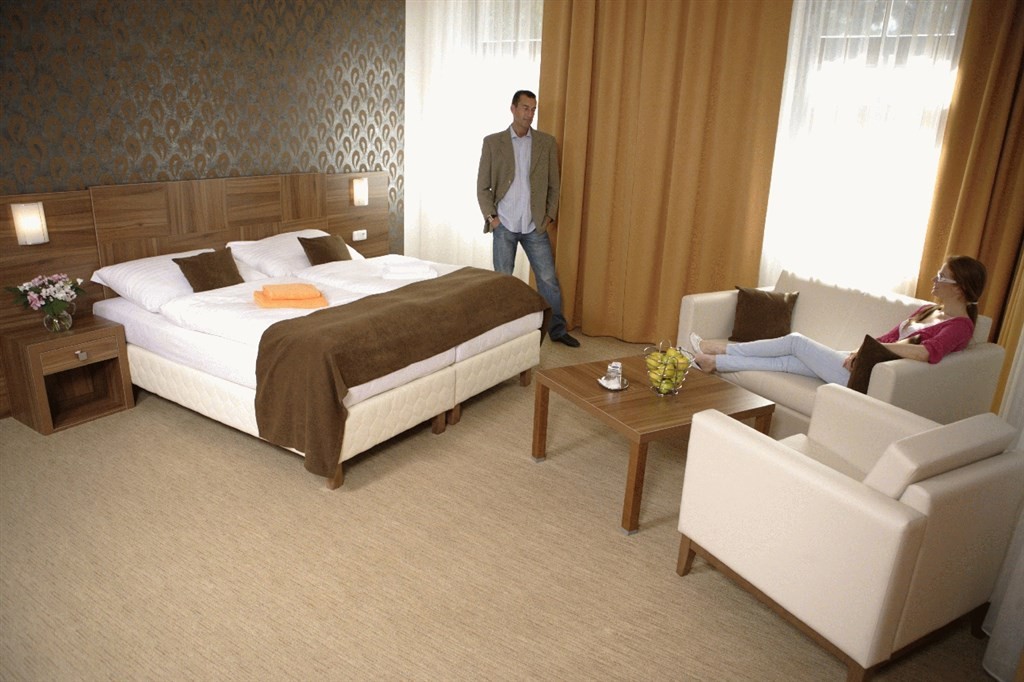 Vše na ověření: 1 a 2 - lůžkové pokoje SUPERIOR 2 - lůžkové apartmá SUPERIOR Sprcha nebo vana + WC, fén, SAT/TV, telefon, minibar, Wi-Fi, rozměr lůžka - jednolůžkový pokoj 140 cm x 200 cm, dvoulůžkový pokoj 2 x 90 cm x 200 cm. Minibary na pokojích jsou na vyžádání.