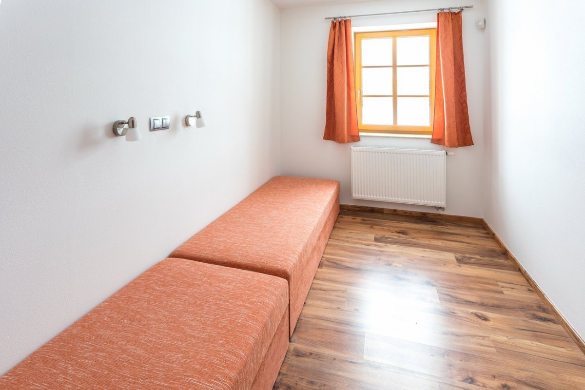 Šestilůžkový apartmán se dvěma ložnicemi se skládá z ložnice č. 1: 3× jednolůžková postel, ložnice č. 2: 1× jednolůžková postel, obývací pokoj: 1× rozkládací pohovka pro 2 osoby.