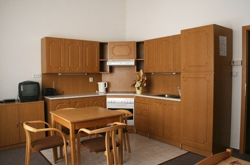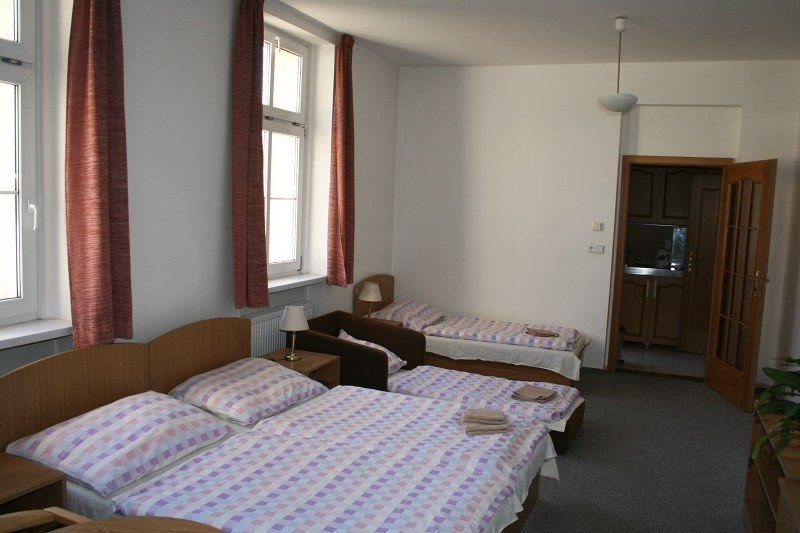 Překvapivě pěkné ubytování. Součástí byla vybavená kuchyňka. Pobyt byl bez stravy, kuchyňka byla dostačující. Parkování za penzionem zdarma.