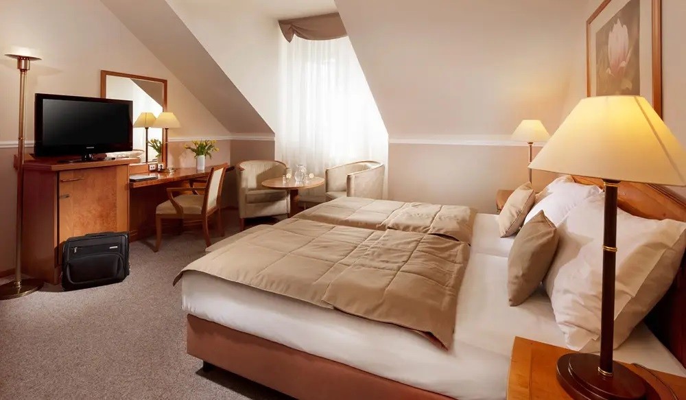 Standard: Pohodlné větší pokoje, které vám zpříjemní pobyt v lázních. Výhled směřuje do lázeňského parku, nebo Poštovní a Husovy ulice. U hostů se jedná o velmi oblíbený typ ubytování.