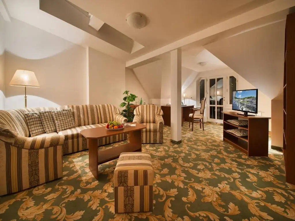 Hotel nabízí 2-3 lůžkové pokoje (manželská postel nebo 2-3 samostatné lůžka, případně rozkládací gauč), apartmány až pro 4 osoby (ložnice s manželskou postelí nebo 2 samostatnými lůžky a obývací pokoj, možnost až 2 přistýlek, většina apartmánů s vybavenou kuchyňkou). Všechny pokoje jsou vybaveny klimatizací/topením, SAT/TV, menší lednicí, sadou na přípravu kávy a čaje, Wi-Fi připojením zdarma, některé pokoje s balkonem.