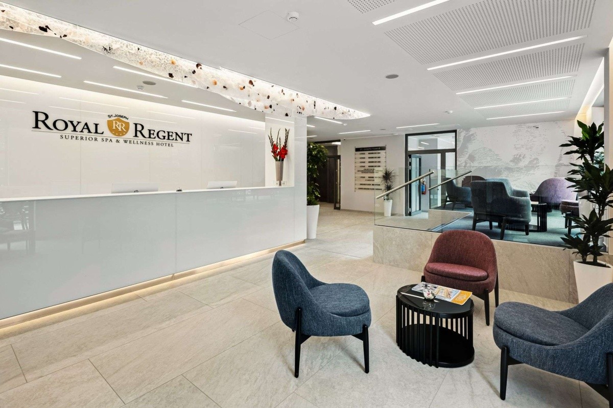 Hotel St. Joseph Royal Regent Tower se nachází v bezprostřední blízkosti léčivých pramenů a zároveň na velmi tichém a klidném místě lázeňské zóny. Vznikl na místě bývalého lázeňského domu pro kněze postaveného v roce 1889 a provozovaného pod názvem Kurhaus St. Josef. Chloubou hotelu byla vzácná domácí kaple zasvěcená právě Svatému Josefovi. Hotel nabízí 31 nových pokojů. Parkování ve vlastních garážích. K dispozici vám je i prostorná dětská herna pro zpříjemnění času vašich dětí, nebo také privátní wellness se samostatnou vanou a saunou pro ideální relax ve dvou. Přesun mezi budovami je plně zajištěn prostřednictvím vnitřního koridoru. Tento koridor je vyhřívaný a navržen tak, aby poskytoval maximální pohodlí. Například při přesunech na procedury. Spa & Wellness služby budou nadále poskytovány ve stávající části wellness hotelu Royal Regent, vč. volného přístupu do wellness centra SKYLAND. V nové části hotelu vznikne privátní wellness, které nabídne prostornou vanu a vlastní saunu, ideální pro klienty hledající klid a soukromí. Nově vzniklé prostory budou rovněž zahrnovat KARDIO FITNESS, poskytující ideální podmínky pro aktivní relaxaci.
