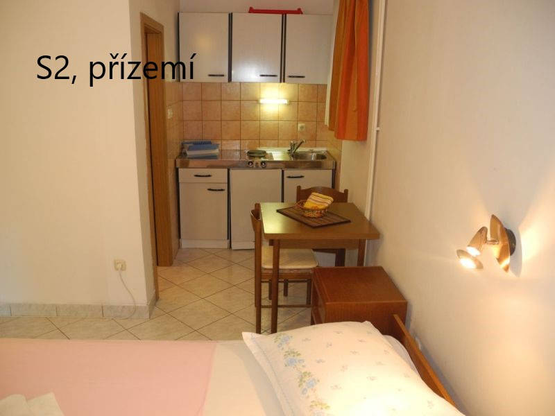 TYP S2: 2-lůžkový pokoj s kuchyňským koutem, hyg. zařízení, SAT TV, klimatizace a terasa.
