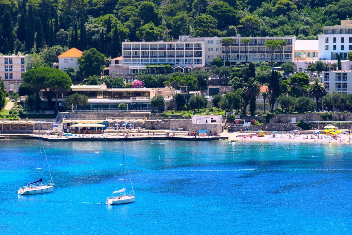 Veľmi dobre vedený prázdninový hotel je situovaný uprostred borovicového lesa v malebnej zátoke Lapad , len 50 m od peknej kamienkovej pláže a 4 km od centra svetoznámeho historického letoviska Dubrovník ( zapísané na zozname svetového kultúrneho dedičstva UNESCO ) . Nákupné možnosti a zábavu majú hostia v centre letoviska ( pohodlne dostupné miestnou dopravou so zastávkou priamo pred hotelom ) .