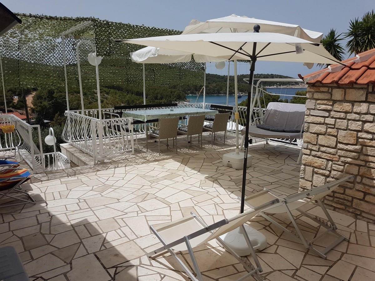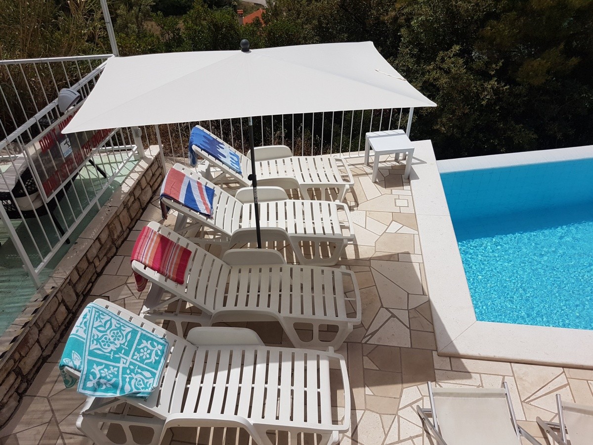Dům jen 100 m od moře, Klimatizace zdarma, WiFi internet zdarma, Bazén, Gril k dispozici, K dispozici pračka, Ze všech apartmánů výhled na moře, K dispozici motorový člun, K dispozici jacuzz, Výlety lodí s majitelem, Výhled na moře, Klidná část letoviska, K dispozici hřiště na petanque, Parkování u domu,