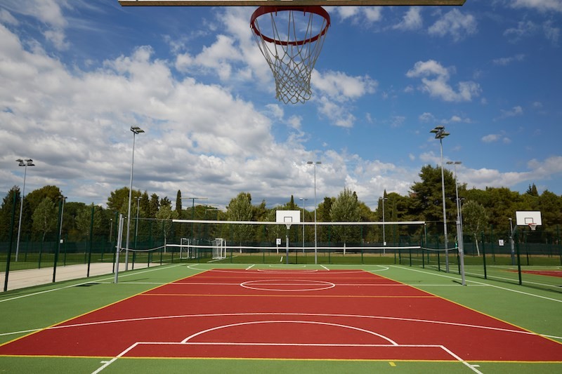 dětské hřiště, hřiště pro fotbal, basketbal, volejbal a plážový volejbal. Tenisové kurty cca 2 km od kempu.