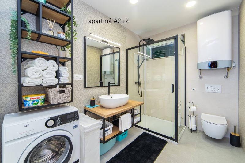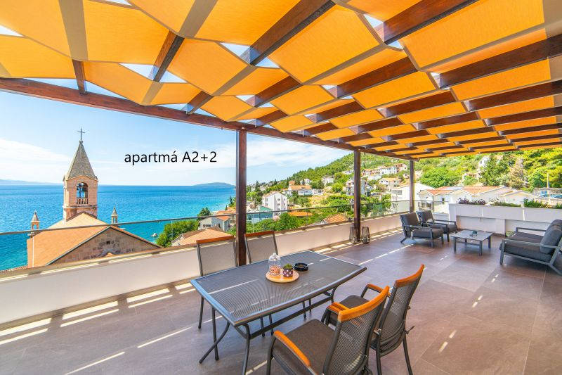 TYP A2+2, 2. patro: ložnice se 2 lůžky, kuchyň s možností až 2 přistýlek, hyg. zařízení, SAT TV, klimatizace a terasa.