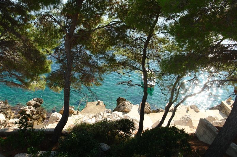 Pekná, prírodná kamienková plážičky s pozvoľným vstupom do mora, blankytne modrou vodou a sezónne ponukou vodných športov (za poplatok) sa nachádza 300 m od ubytovanie (prístup cez miestnu komunikáciu, z kopca). Hostia majú možnosť kotvenia vlastného člna zadarmo.Neoficiálny popis ubytovanie