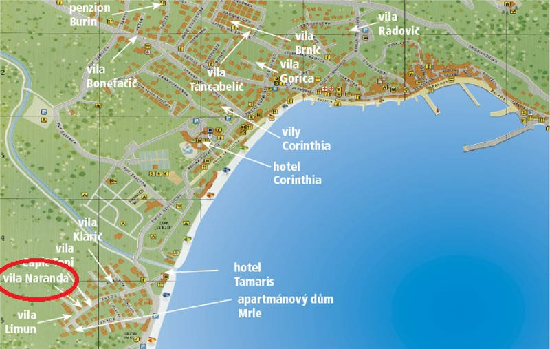 Vila Naranča Brnič leží cca 350 m od centra města Baška i od krásné oblázkové pláže. Vila je klimatizovaná, má parkoviště a Wi-Fi internet.