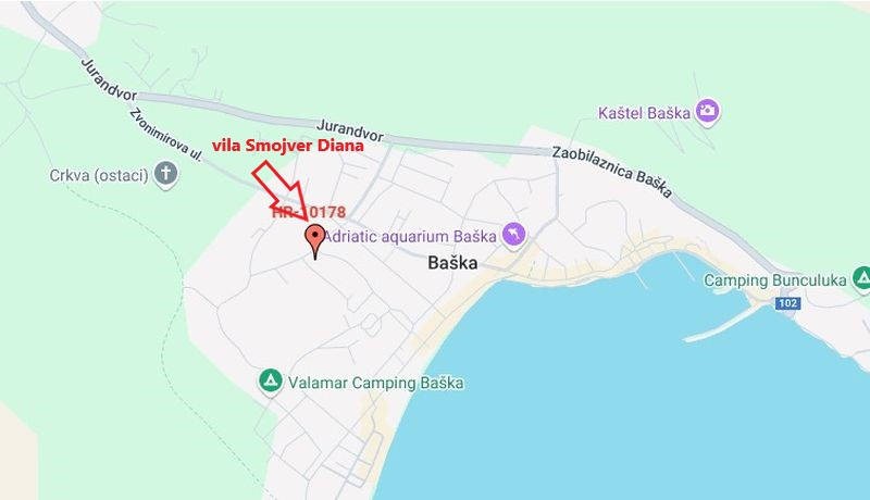 Vila Smojver Diana se nachází cca 400 m od moře a cca 500 m od centra města Baška. Vila je klimatizovaná, má parkoviště a Wi-Fi internet.