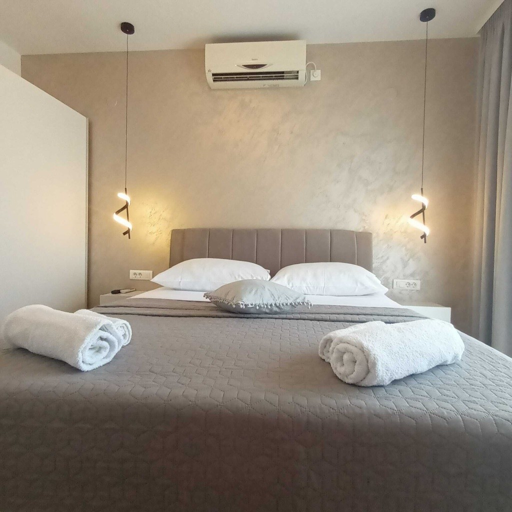 V letovisku krásné oblázkové pláže, Klimatizace zdarma, WiFi internet zdarma, Komfortně vybavená studia - TV/SAT, Gril k dispozici,
