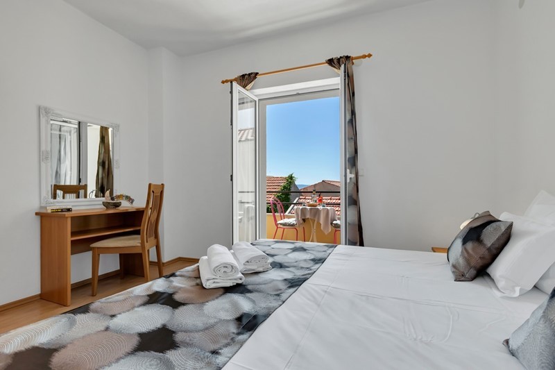 APT 1/3 (1/2+1) ve 3. patře - 2 balkóny (jeden částečně na moře), ložnice oddělená od kuchyně