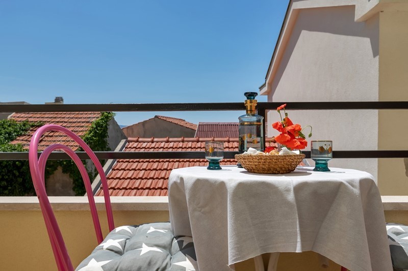 APT 1/3 (1/2+1) v 1. patře - 2 balkóny (jeden částečně na moře), ložnice oddělená od kuchyně