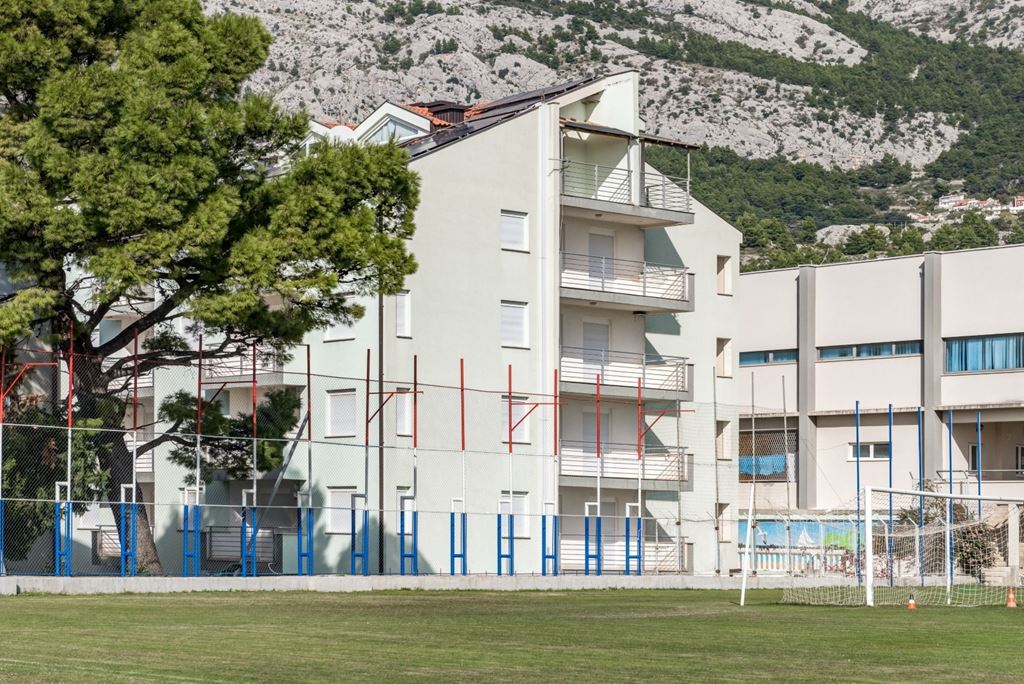 Moderný apartmánový dom je situovaný na atraktívnom mieste známeho letoviska Baška Voda, len 300 m od historického centra a 200 m od krásnej kamienkovej pláže. Nákupné možnosti a zábavu majú hostia v centre mesta (obchody, reštaurácie, bary, tradičný trh, športoviská). Vzdialenosť z Prahy je 870 km.Vybavenie