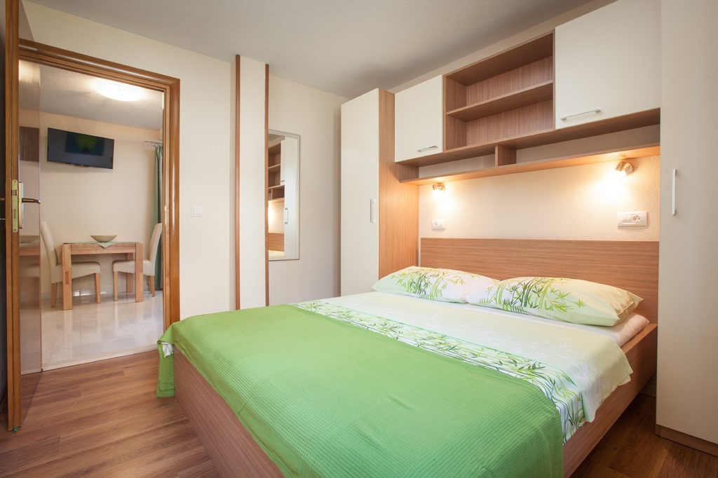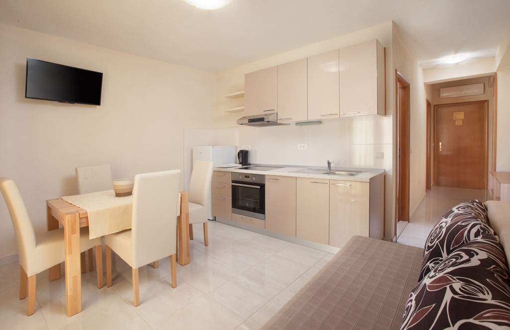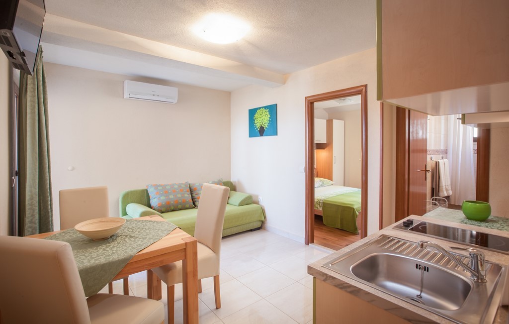 skládá se ze dvou místností se dvěma pevnými lůžky s možností přistýlek. Ložnice s manželským lůžkem, v jídelně rozkládací pohovka s možností až 2 přistýlek. Přistýlku je možno využít buď pro 2 děti do 16 let, nebo 1 osobu nad 16 let. Součástí výbavy každého apartmánu je kuchyně (lednice, rychlovarná konvice, sporák, vybavení pro základní stolování a přípravu jídla), balkon, vlastní soc. zařízení (vana, umyvadlo, WC), TV/SAT, wi-fi, klimatizace.