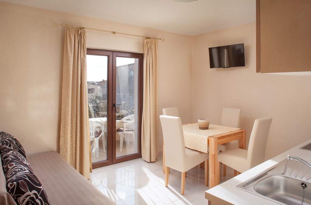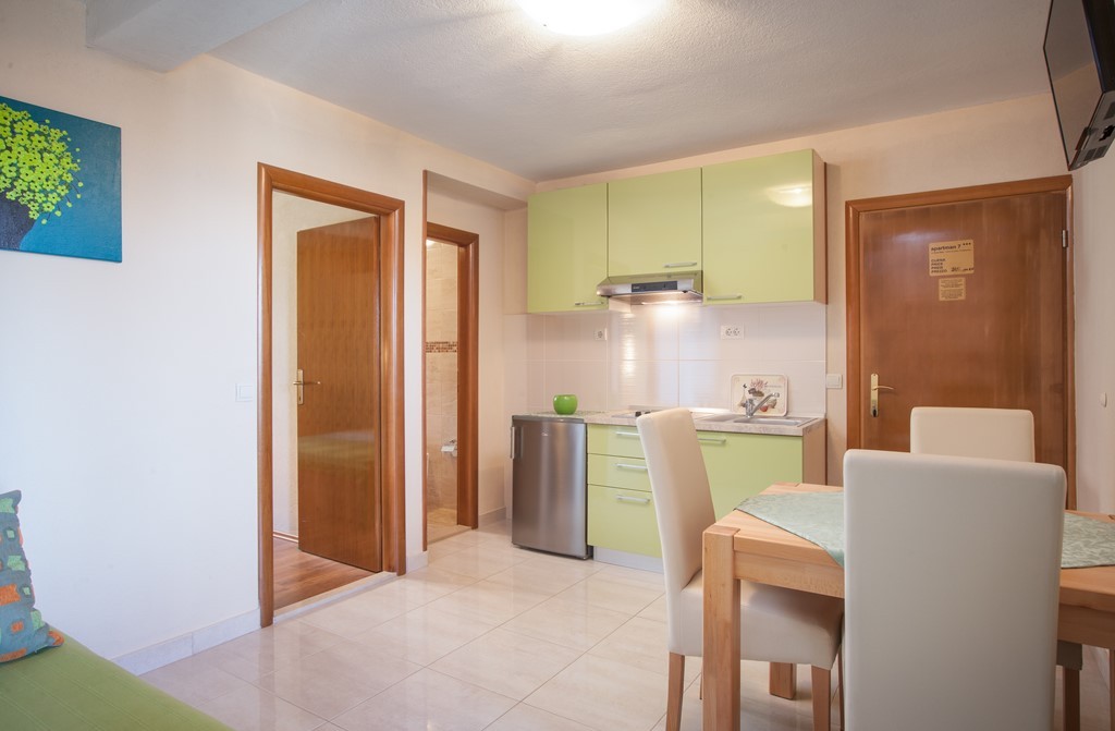 Penzion Kate sousedí s oblíbeným penzionem Bartulović na Makarské. Nabízí ubytování v prostorných moderních apartmánech, které svojí výbavou a vzhledem uspokojí i náročného klienta. Je situován mezi centrem města a pláží. Penzion je vhodný pro rodiny s dětmi i pro páry. Součástí apartmánu jsou polštáře a přikrývky včetně povlečení. Nehlídané parkoviště na silnici pod domem zdarma, ale není garantováno. Placené parkoviště 20 €/den u hotelu Palma, 10 €/ den Moja Dica.