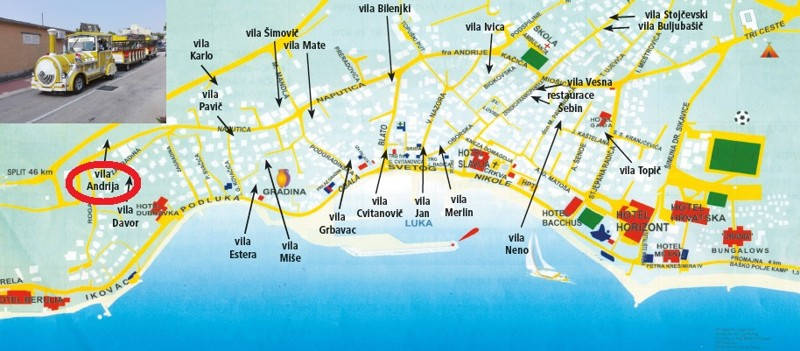 Vila Andrija se nachází cca 350 m od oblázkové pláže a cca 450 m od centra města Baška Voda. Vila je klimatizovaná, má parkoviště a Wi–Fi internet.