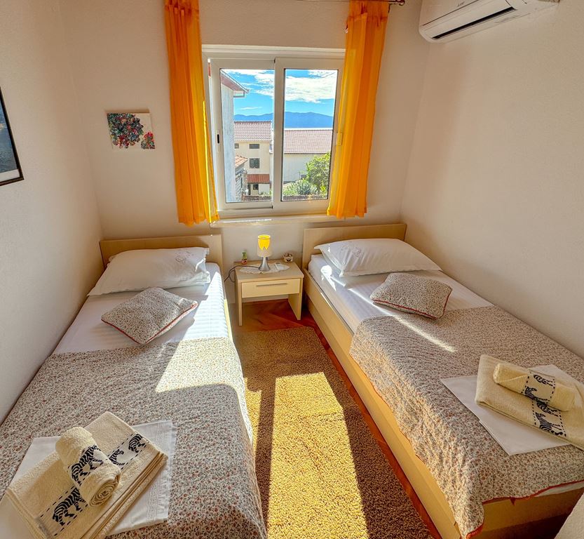 apartmán je určen až pro 4 osoby. Nabízí dvě ložnice, vlastní sociální zařízení, klimatizaci, WiFi, TV, terasu nebo balkón s orientací na moře. Klimatizace i WiFi připojení jsou zahrnuty v ceně pobytu, kuchyňka.