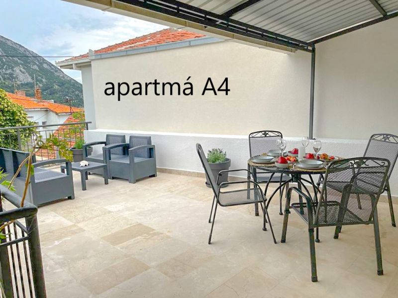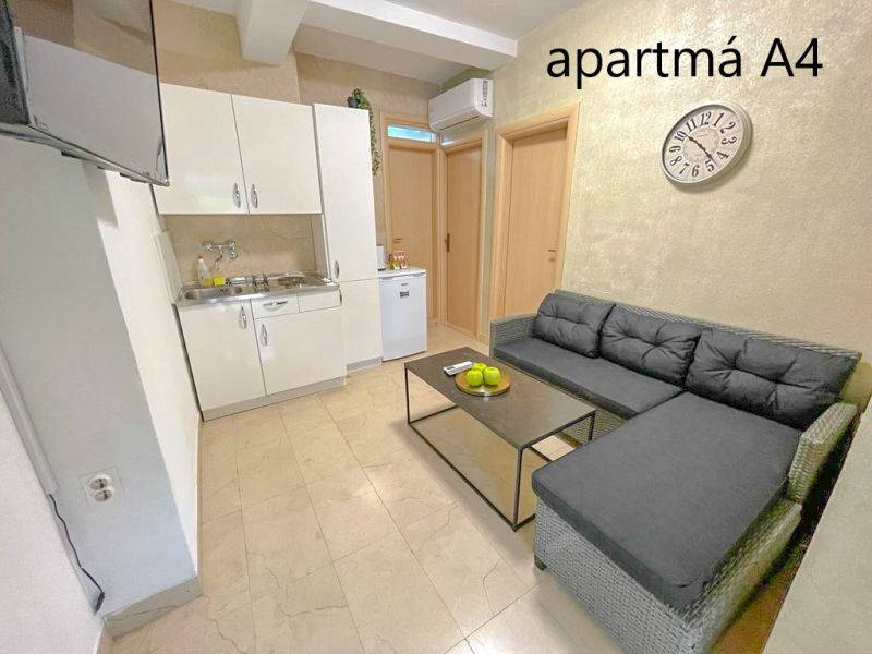 TYP A4: 2 ložnice se 2 lůžky, kuchyň, hyg. zařízení, SAT TV, klimatizace a terasa.