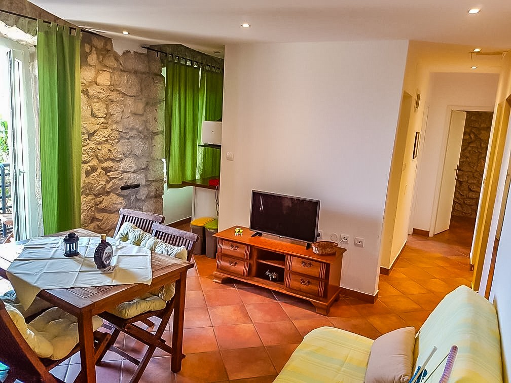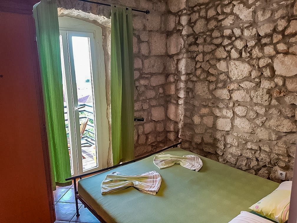 apartmán s možností až dvou přistýlek. Skládá se ze dvou místností - ložnice (2x) s manželským lůžkem, 1x koupelna a WC, kuchyňka (lednice, mikrovlnka, varná deska, kuchyňské vybavení pro základní stolování a přípravu jídla), obývací místnost s rozkládací pohovkou (možnost 2 přistýlek), TV, klimatizací a wifi zdarma. Apartmán se nachází v 1. a 2.patře, má balkon a orientaci na moře.