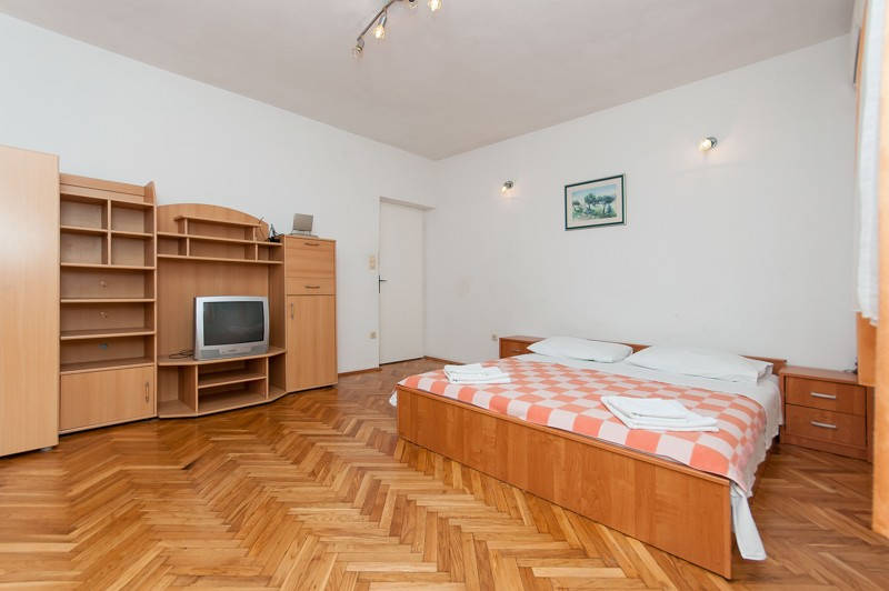 TYP A6+2: 3 ložnice se 2 lůžky, obyvací část s gaučem na rozložení pro 2 osoby, hyg. zařízení, SAT TV, klimatizace a balkon nebo terasa. Dům má 2 apartmány a jeden z nich má 2x hyg. zařízení - na vyžádání.