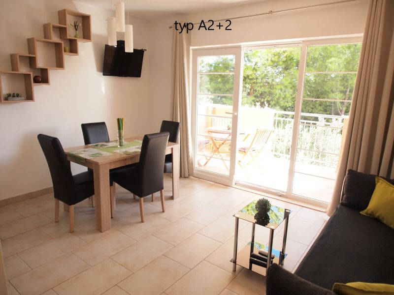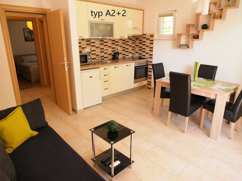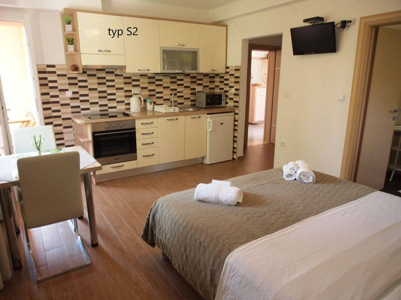 Moderne zariadené, priestranné apartmány sú vybavené sociálnym zariadením (sprcha, toaleta, fén), obývacou izbou, kuchynským kútom (základný riad, chladnička, varič, rýchlovarná kanvica, umývačka riadu), klimatizáciou, satelitnou TV a balkónom alebo terasou s posedením (výhľad na mora. apartmány typu MONO s možnosťou ubytovania pre dve osoby majú sociálne zariadenie, obývacia izba s francúzskym lôžkom, kuchynský kút a balkón s výhľadom na more. Priestornejšie apartmány BILO pre 4 osoby majú spálňu, sociálne zariadenie, obývacia izba s rozkladacím lôžkom, kuchynský kút a balkón s výhľadom na more. WiFi pripojenie je k dispozícii zdarma. Ubytovanie je nefajčiarske.
