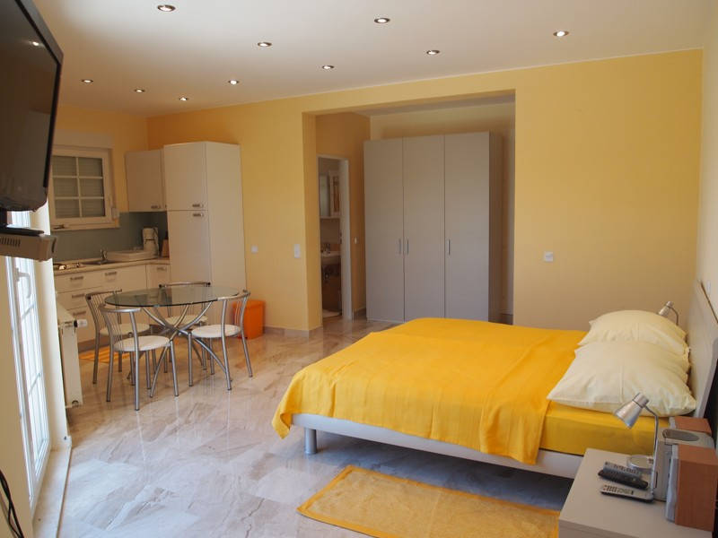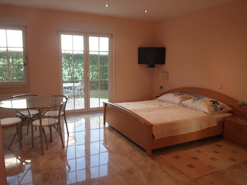 TYP S2+1: 2–lůžkový pokoj s možností přistýlky (pro dítě do 12 let), kuchyňský kout, hyg. zařízení, SAT TV a terasa.