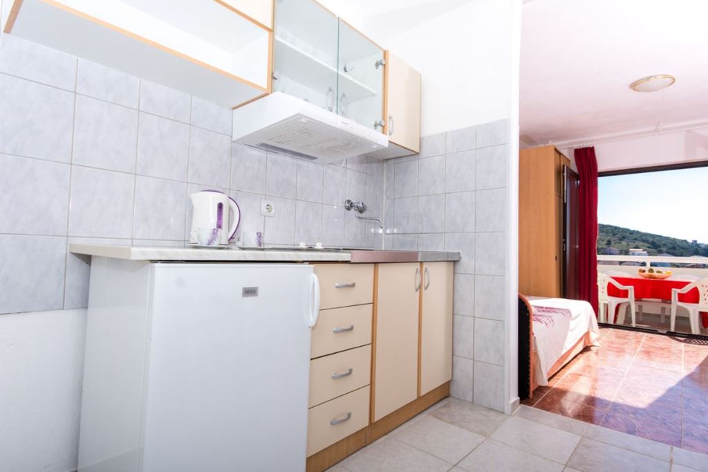 Studio 2+1 je v přízemí a má jedno dvoulůžko s rozkládacím lůžkem pro 1 osobu, vše v jedné místnosti včetně menší kuchyňky. Dále je zde koupelna/ WC a terasa s posezením.