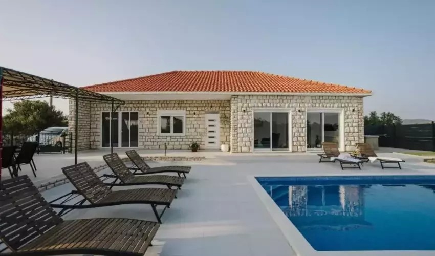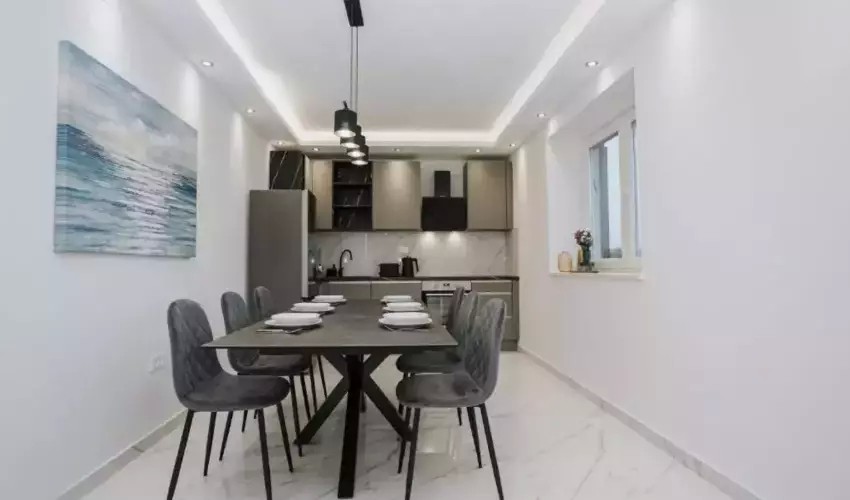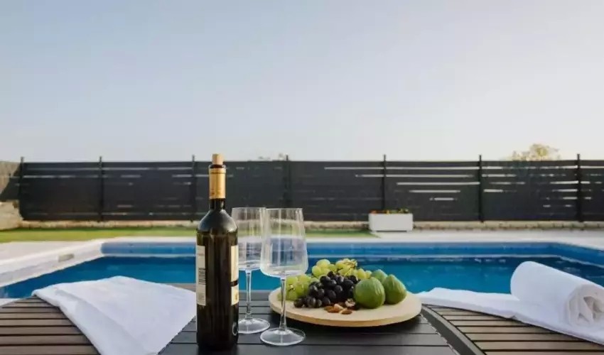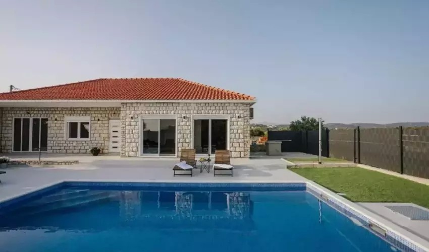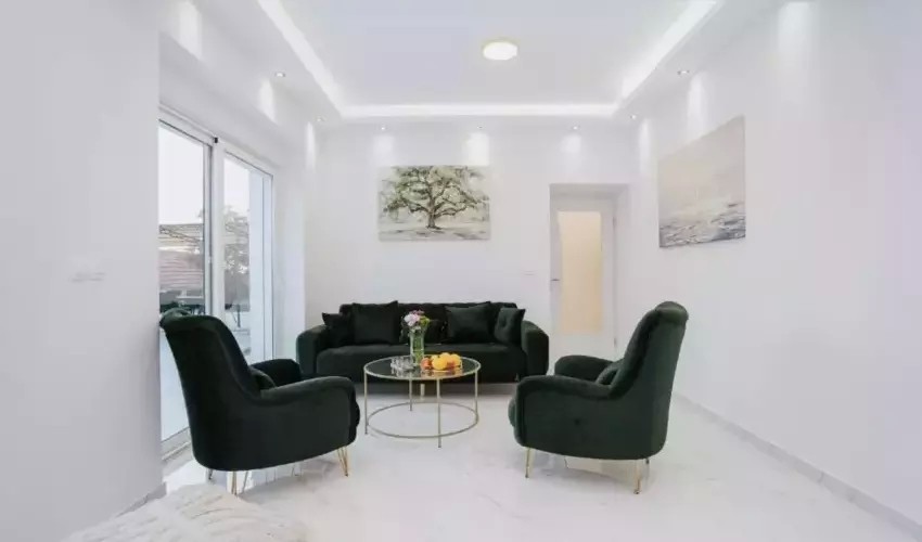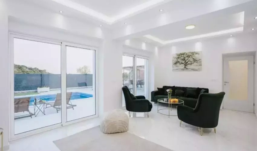 Utečte do klidného kouzla vily Verde, krásně navržené přízemní vily zasazené do nadčasové olivové zahrady. Tento poklidný útočiště nabízí soukromí, pohodlí a nenápadnou eleganci, což z něj činí ideální místo pro rodiny nebo malé skupiny, které hledají tichý středomořský pobyt.Vila disponuje dvěma ložnicemi s manželskými postelemi, jednou ložnicí se dvěma jednolůžky a dalším místem na spaní pro jednoho hosta na pohovce v obývacím pokoji. Otevřený interiér je světlý a přívětivý, zaplavený přirozeným světlem a příjemnou, útulnou atmosférou.Ven