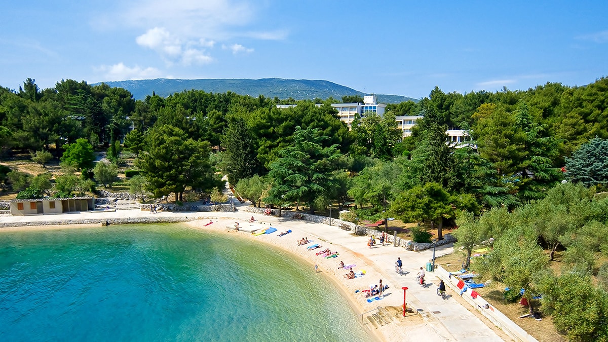 Štěrkové pláže nalevo i napravo od hotelu. Střídavě pláže pro psy. Cca 15 minut pěšky nudistická pláž.