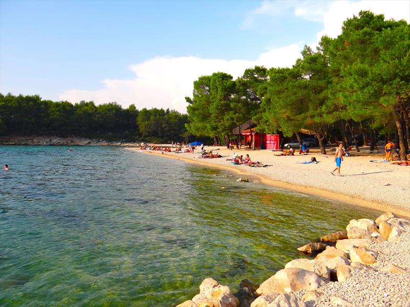Vyhledávaná písčito-oblázková pláž Pine Beach s pozvolným vstupem do moře se nachází jen cca 80 m od vily Marko – vstup pouze po zakoupení vstupného do kempu Pine Beach – cca 4,- Euro/os./den – v ceně také lehátka na pláži. Další pláž Pilatuša cca 500 m od vily – 7 minut procházkové chůze (bez vstupného) – písčito-oblázková pláž s pozvolným stupem do moře, na pláži je také plážový bar.