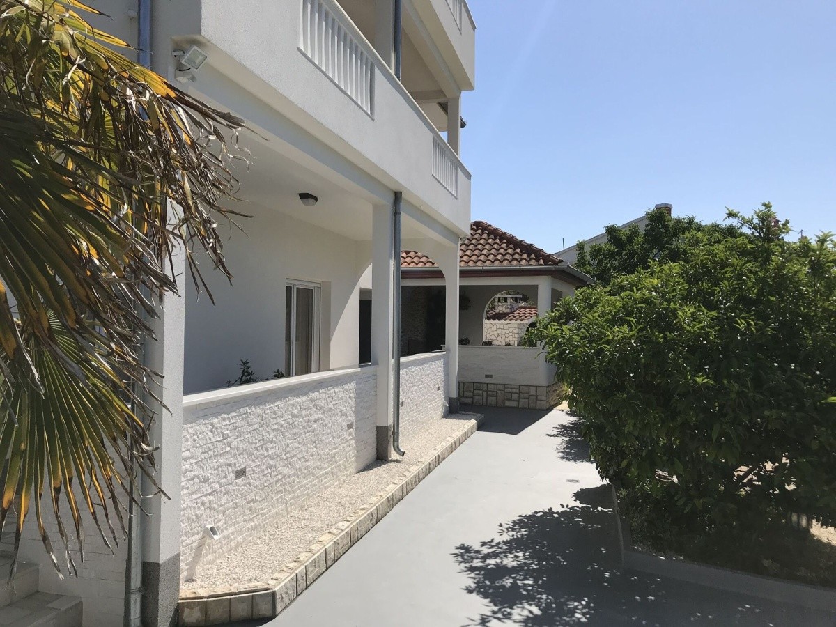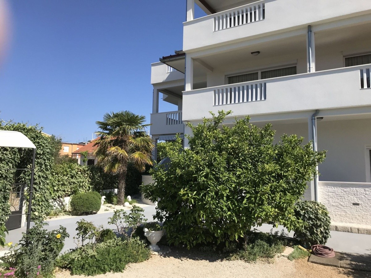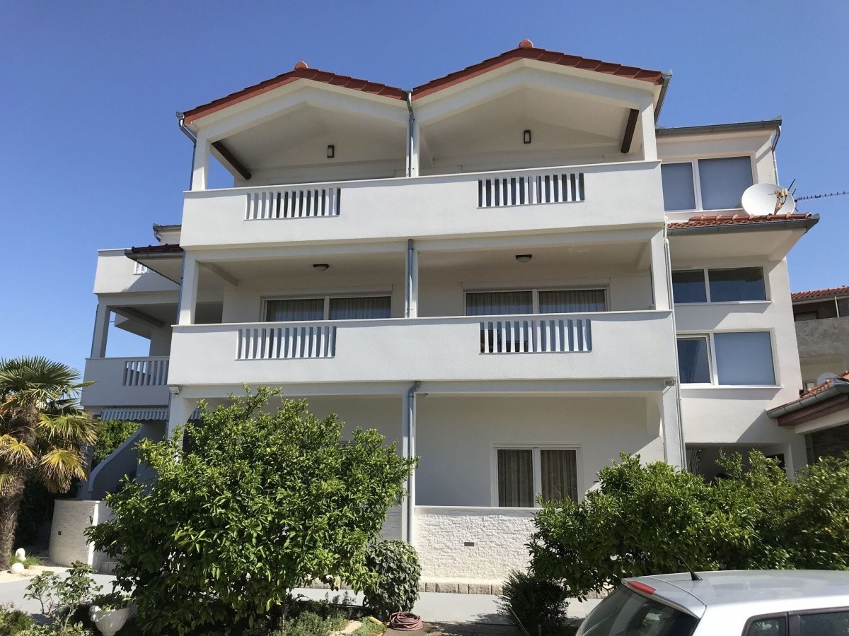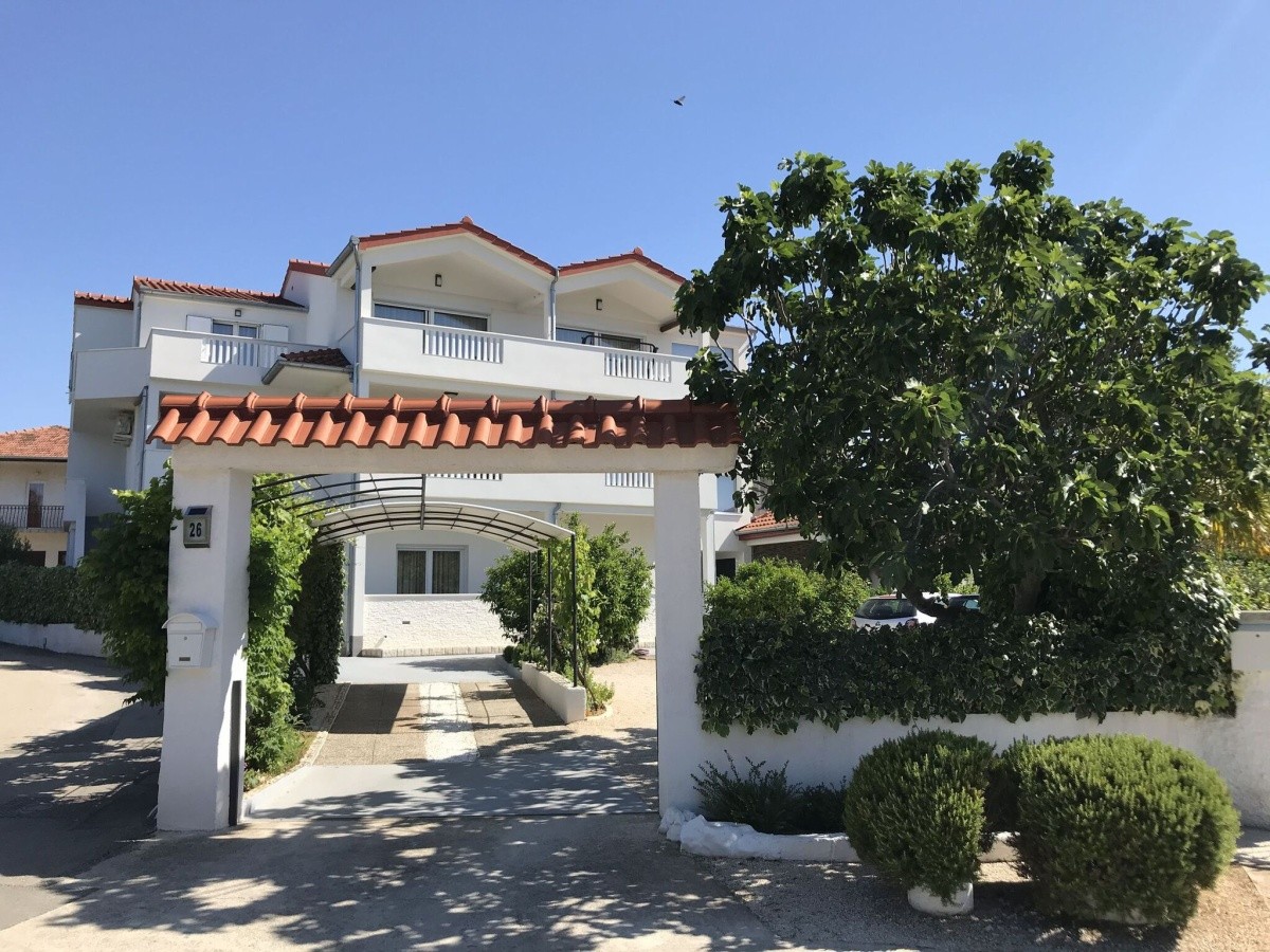 Krásna, široká kamienková pláž s veľmi pozvoľným vstupom do mora, priezračne čistou vodou a sezónne ponukou vodných športov sa nachádza 100 m od apartmánov (prístup cez pokojnú miestnu komunikáciu). Klientom sú k dispozícii sprchy a ležadlá so slnečníkmi (za poplatok).Neoficiálny popis ubytovanie