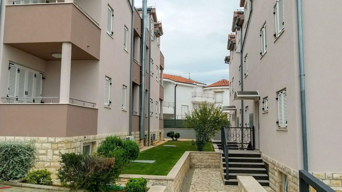 Apartmány se nacházejí přímo u pláže v letovisku Srima. Od pláže je dělí pouze pobřežní promenáda. V okolí apartmánů je řada restaurací, stánků se zmrzlinou, kafe barů. Komplex se skládá ze dvou za sebou stojících budov.