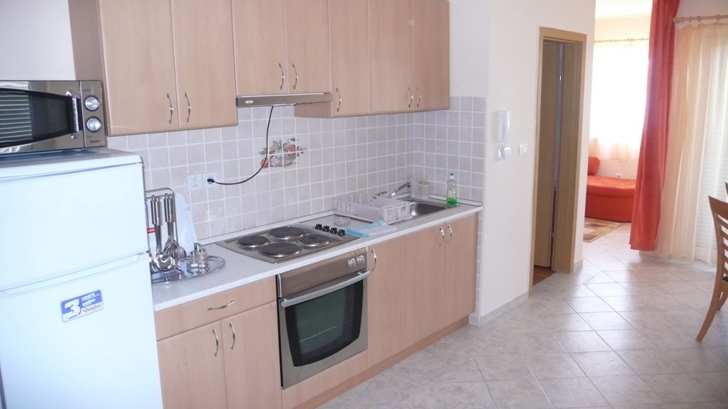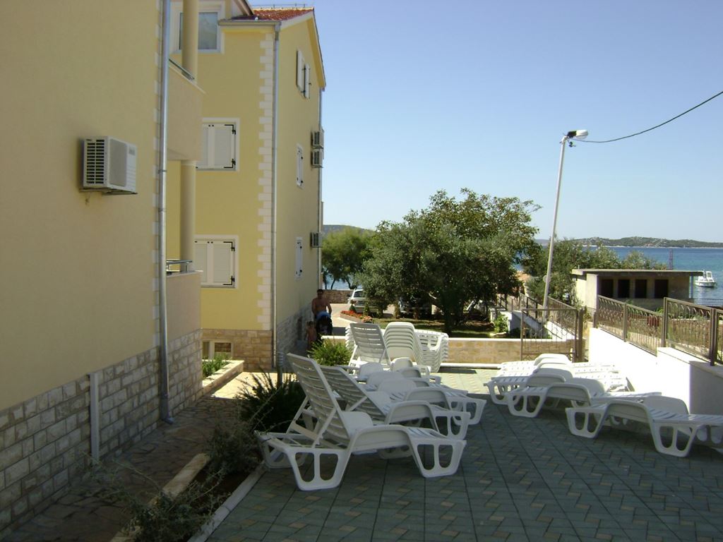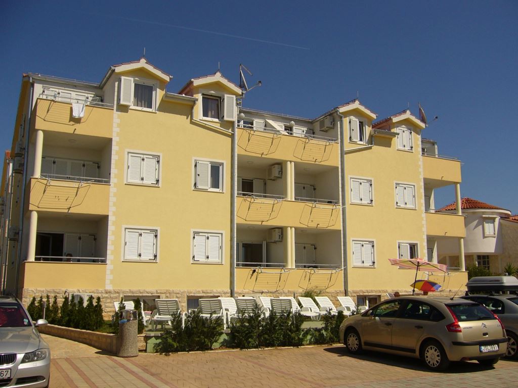 Úplne nový apartmánový dom sa nachádza v pokojnej vilovej časti Vodice, v blízkosti hotela Jadran Plavi. Apartmány sú situované vo vzdialenosti asi 300 m od pozvoľne sa zvažujúca kamienkové pláže, vhodné aj pre deti. Centrum mestečka s nákupnými a zábavnými možnosťami je vzdialené približne 20 minút prechádzkou pozdĺž pobrežia alebo turistickým vláčikom.Vybavenie