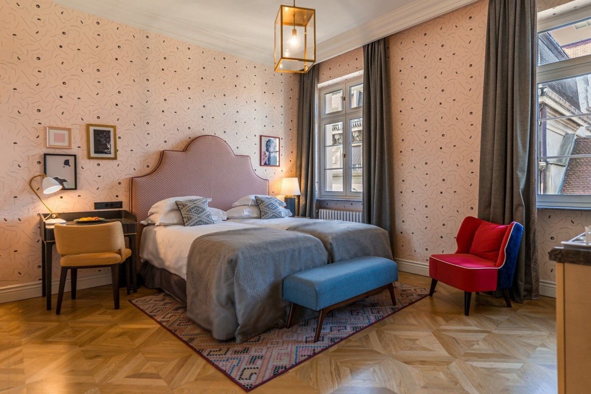 Pokoj superior s francouzským balkonem a výhledem na město