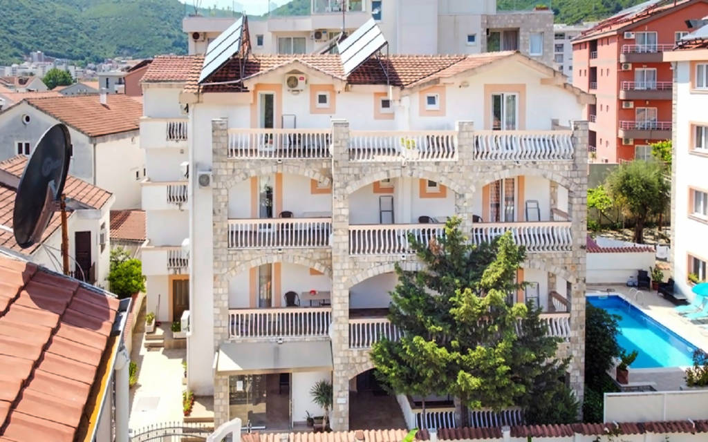 Objevte Iper v Budvě, Černá Hora, kde se moderní komfort setkává s úchvatnými výhledy na pobřeží. Užijte si prostorné pokoje, osvěžující bazén a snadný přístup k živé místní kultuře a krásným plážím.