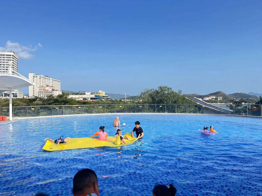 This hotel is located in Sanya, within walking distance of the beach, accessible via an overpass. It features swimming pools with sunbathing areas, including a rooftop with sea views, as well as restaurants and bars.