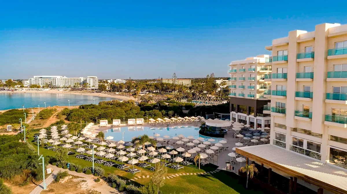 NissiBlu Beach Resort je moderní, elegantní pětihvězdičkový plážový resort, který se nachází nedaleko proslulé pláže Nissi Beach, jedné z nejkrásnějších a nejvyhledávanějších pláží na Kypru. Hotel spojuje stylový design, vysoký komfort a klidnou atmosféru, díky čemuž osloví klienty hledající kvalitní dovolenou u moře s nadstandardními službami. Resort nabízí prostorné a vkusně zařízené pokoje. Součástí areálu je velký venkovní bazén se sluneční terasou, samostatný dětský bazén i vnitřní bazén. Pro relaxaci slouží Spa centrum s nabídkou masáží, sauny a dalších procedur, zatímco aktivní hosté ocení fitness centrum. Stravování zajišťuje několik restaurací a barů, které nabízejí mezinárodní kuchyni, středomořské speciality i tematické večeře. Díky své poloze v blízkosti centra Agia Napa mohou hosté snadno kombinovat klidný pobyt v resortu s možností večerních procházek, nákupů či posezení v místních restauracích. NissiBlu Beach Resort je ideální volbou pro páry, rodiny i náročnější klienty, kteří chtějí spojit krásnou pláž, moderní prostředí a vysokou úroveň služeb.